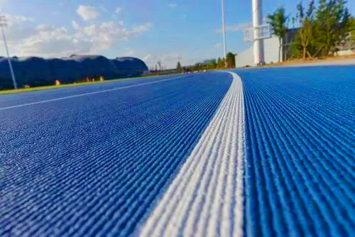 上下一体通体材料,产品整体含胶量高达30%以上,抗撕裂性高;结合独有的卷材技术及配方,优化分子结构,具备出色的体感柔韧性及高弹性;有效降低传统预制型跑道接缝处崩裂、弯道裂板。